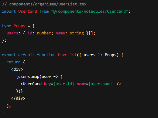 Um ponto essencial no uso do Atomic Design é a separação de responsabilidades. Isso garante que cada camada do sistema tenha um papel bem definido, evitando a mistura de lógica de negócio com apresentação:
