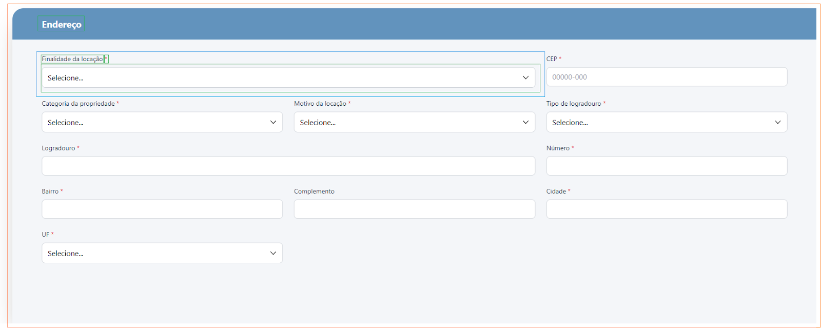 - Formulário “Endereço”: agrupa vários campos em um bloco coeso.
