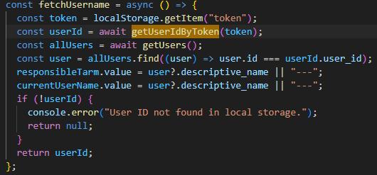responsibleTarm,currentUserName) com o nome do usuário.